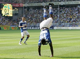 Le BVB n’est guère plus inspiré après la pause : seule une percée de Kuba (le meilleur dortmunder dimanche) suivie d’un tir à côté de Petric amène quelques frissons dans le dos des 8’000 supporters des Zebras qui ont parcouru les 57,32 kilomètres séparant la MSV-Arena du Westfalenstadion. On commence à prendre conscience que la fête risque bel et bien d’être gâchée lorsque l’entraîneur Thomas Doll fait rentrer le Sud-Africain Delron Buckley, jamais décisif dans le championnat suisse avec Bâle. A peine entré sur le terrain, l’ex-Bâlois accroche Tiffert dans la surface, provoquant un penalty que transforme l’ex-Zurichois Tararache (62e). Le transfert vedette de l’entresaison au MSV, c’était l’arrivée de l’ex-roi des buteurs de la Bundesliga, Ailton. Mais le Brésilien doit pour l’instant assister depuis le banc aux exploits d’un joueur moins réputé, venu de Brugge, Manasseh Ishiaku. En triplant la mise sur un centre de Lamey (64e), le Nigérian s’est offert son deuxième doublé en l’espace d’une semaine, après avoir déjà marqué deux fois en Coupe à Babelsberg. Ailton n’est peut-être pas près de retrouver sa place à la pointe de l’attaque des zèbres. Quant au Westfalensadion, ce troisième but du MSV le plonge dans la consternation et l’irritation.
