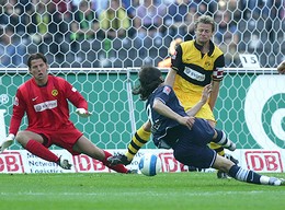 Lors des deux premiers matchs de la saison, Dortmund a été battu et a encaissé sept buts avec Roman Weidenfeller dans les goals. Ensuite, le portier du BVB a écopé de trois rencontres de suspension pour insultes racistes. En son absence, le Borussia a gagné trois fois et son remplaçant Ziegler réussit trois blanchissages. Et pourtant, pour le match à Berlin, Thomas Doll a rendu sa place à Weidenfeller. Le résultat ? Le dernier rempart du BVB a permis au Hertha de renverser la vapeur après l’ouverture du score de Petric en laissant passer sous son ventre une reprise acrobatique de Pantelic, puis en repoussant un tir du Serbe directement sur Lucio. Okoronkwo a inscrit le 3-1 en faisant joujou avec Wörns et Weidenfeller, permettant au Hertha de signer son troisième succès d’affilée malgré un nouveau but de Petric (son 2e doublé en 8 jours) en fin de match. Les positions sont encore très serrées et le championnat est encore long mais Lucien Favre est en passe de réussir son pari : faire gagner une équipe que tout le monde voyait en fin de classement avant le coup d’envoi du championnat.