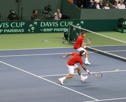 Deux jours après l’ouverture des hostilités face à une courageuse et tenace équipe de Belgique, Rodgeur et Stan ont remporté de haute lutte le double 4-6 7-6 6-3 6-3, rapportant du même coup le troisième point, synonyme de promotion dans le groupe mondial. L’objectif est atteint pour la plus grande joie des fervents supporters dorénavant prêts à soutenir les leurs dans la quête du «récipient argenté».