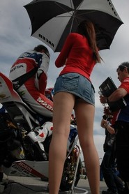 2. Sooool! 😉 Oui oui elle existe bel et bien, c’était l’umbrella girl de Ben Spies cette saison à Valence (je suis pas sure à 100% du circuit..) 🙂