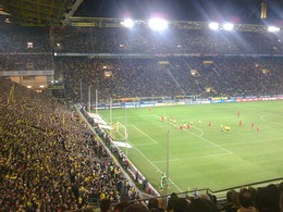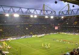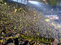 Mais il suffira d’une action pour changer radicalement la physionomie de la rencontre, une longue ouverture suivie d’une déviation hasardeuse de Patrick Owomoyela pour Kevin Grosskreutz dont la frappe enroulée est détournée en corner par le portier de Werkself et (très controversé) de l’équipe d’Allemagne, René Adler. Une immense clameur salue cette première offensive dortmundoise : le stade venait de basculer dans une autre dimension, le match de basculer tout court. Les chœurs ne semblaient plus provenir des bouches de nos voisins ou même de l’imposante Südtribüne mais des entrailles même du stade, avec un son qui paraissait occuper tout l’espace pour descendre en direction du terrain.