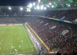 L’ambiance est complètement survoltée car, curieusement, c’est la première fois dans l’histoire de la Bundesliga que la première place du classement est l’enjeu du Borussen-Derby entre les Traditionsvereine Mönchengladbach et Dortmund. Il faut dire que les deux clubs n’ont pas connu leurs heures de gloire en même temps : dans les années 1970, lorsque Gladbach dominait le foot allemand, le BVB luttait contre la relégation ou évoluait même en 2ème division. A l’inverse, les Fohlen étaient déjà sur le déclin lors des grandes heures du Borussia Dortmund dans les années 1990. Et pas plus tard que l’année dernière, Dortmund a fini champion d’Allemagne (tu vas finir par le savoir), alors que Mönchengladbach échappait miraculeusement à la chute grâce, notamment, à un succès contre le BVB à quatre journées de la fin.