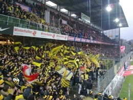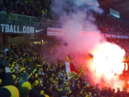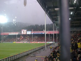 Le ciel est bas sur Freiburg, les cimes de la Forêt Noire disparaissent dans le brouillard et il pleut à verse. C’est donc avec un certain déplaisir que l’on constate que le bloc réservé aux supporters adverses est le seul endroit du stade qui n’est pas couvert et où il n’y a pas d’alcool dans la bière. Quand le speaker annonce une température de 3 degrés, on en vient presque à espérer qu’elle chute de 2 ou 3 degrés pour que la pluie se transforme en neige… En plus, avec les filets, les grillages et les poteaux, on ne voit pas grand-chose. Ceci dit, on se plaint mais on n’aurait pas échangé notre place contre une loge à vie à Wembley. Car, en fin de saison, s’il y quelque chose à fêter, on se souviendra de ce déplacement dantesque et on se dira qu’on était là lorsque le club a remporté ce succès capital. Car après la victoire du Bayern la veille contre Cologne, il était essentiel pour le Borussia de l’emporter à Freiburg afin de garder le contact avec les Rekordmeister.