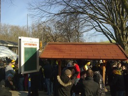 Malgré la température glaciale (mais pas autant que pour le match du centenaire contre Freiburg), le stade affiche presque complet et les Biergarten sont pris d’assaut. Avec un soupçon d’accent francophone en plus que d’habitude. Quelques semaines avant de le rencontrer sur un terrain en huitième finale de Coupe vaudoise seniors, on aperçoit Stéphane Chapuisat devant le FanShop, avant d’aller boire l’apéro au Biergarten du Rote Erde Stadion avec une sympathique délégation de l’AS Haute-Broye. Alors que mes compagnons de route de la Broye fribourgeoise prennent la place en Südost Tribüne traditionnellement occupée par mes voisins polonais (Déborah, j’attends toujours la vidéo de la composition des équipes que nos lecteurs seraient sans doute ravis de voir). Comme quoi, à force de faire du prosélytisme intempestif pour répéter en boucle que Dortmund c’est plus mieux que tout le reste du monde…