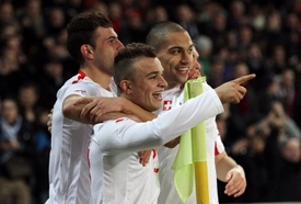 Globalement, la Suisse n’a pas fait un mauvais match. La charnière centrale Senderos – Affolter a été intéressante et on espère qu’Ottmar Hitzfeld ne tiendra pas rigueur au néo-Brêmois de son erreur de jeunesse. Rodriguez semble lui installé pour un bout de temps dans son couloir gauche. Offensivement en revanche, il devient de plus en plus évident que la Suisse dépend exclusivement de Xherdan Shaqiri, dans tous les (rares) bons coups hier. Que se passera-t-il lors des matchs décisifs de l’automne si le Bâlois est blessé, dans un mauvais soir comme il l’avait été au Monténégro ou au Pays de Galles ou à court de compétition parce qu’il ne joue pas au Bayern ? La Suisse sera condamnée à ne pas prendre de goal pour sauver le 0-0. Admir Mehmedi paraît encore bien tendre et Granit Xhaka est bourré de qualités, on l’a encore vu sur le 1-1, mais il n’est pas un numéro 10. Quant à Eren Derdiyok, une fois de plus, il est passé au travers avec la Nati, entre ballons perdus bêtement et reprises à côté du ballon. Certes, il revenait de blessure puisque samedi dernier à Köln il s’est échauffé durant 45 minutes sans entrer en jeu mais ça n’excuse pas tout. Lors d’un coup-franc à 30 mètres, on a vu Ottmar Hitzfeld, juste devant nous, revenir dépité vers son banc quand il a vu que Derdiyok allait tirer, avant même que celui-ci n’ait commencé sa course d’élan pour viser le deuxième anneau.