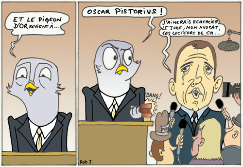 Certaines voix se sont élevées contre cette nomination car on ne touchait plus au domaine strictement sportif. Rien de plus faux : à l’époque, Tiger Woods avait brillamment figuré sur la liste des pigeondorisés possibles lorsque sa grappe de naïades avaient soudainement fait surface. Sur tous les tableaux, il était toujours question de différents 18 trous plus ou moins faciles à apprivoiser, compilant chacun près de 5’000 verges. La situation est pareille pour «blade gunner» qui, toujours à l’affût d’un nouveau défi sportif et médiatique, s’est essayé au tir au pistolet en rafale à courte distance après avoir testé ses aptitudes au cricket, le Sud-Africain faisant d’une pierre deux coups.A quelque part, le Sud-Africain mérite du respect. Alors que d’aucuns rêveraient de culbuter une telle bombe, il se contente, lui, de faire abstraction du cul en butant sa copine. Même si cela lui coûte momentanément sa carrière, peut-être qu’Oscar Pistorius saura se sortir de ce mauvais pas même s’il a encore la justice sur les talons et que sa mise à pied risque bien de se prolonger.