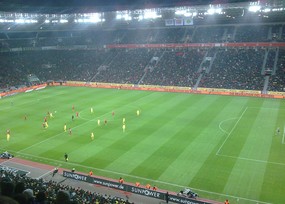 24 août 2013, 15h30 : Bayer Leverkusen – Borussia Mönchengladbach. Köln et Düsseldorf en Zweite Liga, Mönchengladbach est l’adversaire le plus proche géographiquement de Leverkusen. Mais aucun fan des Fohlen ne reconnaîtra le caractère de derby au déplacement vers le seul échangeur d’autoroutes du monde à posséder une équipe de foot de première division.