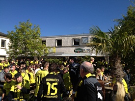 Le seul petit nuage dans le ciel bleu azur du magnifique été indien installé sur la Ruhr c’est que, pour la quatrième fois en sept matchs de championnat, le Bayern Munich a bénéficié de grossières erreurs d’arbitrage pour gagner. Si Josep Guardiola était venu en Bavière pour prouver qu’il pouvait remporter un titre grâce à ses compétences et non grâce à cette haïssable prime arbitral au grand, une vraie gangrène du football, c’est raté pour cette saison. Cela ne nous a pas empêché de célébrer dignement cette victoire qui permet au BVB de conserver la tête du classement. Comme c’est désormais la mode partout en Allemagne, Dortmund a aussi son Oktoberfest. Si l’on s’y est bien amusé, l’objectivité nous pousse à reconnaître que l’ambiance reste assez éloignée et inférieure à celle de la vraie Wies’n, celle de Munich. Mais, à tout prendre, on préfère l’ambiance et la fête au stade toute l’année et pas trop à l’Oktoberfest locale que trois semaines de folie fin septembre et aucune ambiance au stade le reste de l’année. Chacun son truc. Une victoire 5-0, une ambiance de feu et une Oktoberfest en prime : les deux jeunes supporters du Borussia venus de Saint-Cierges et Denezy rencontrés par hasard dans le car de mon fan’s club, triplant la députation francophone d’habitude réduite au seul soussigné, auront apprécié leur baptême du feu au Westfalenstadion. Et voilà deux convertis de plus à la religion jaune et noire !