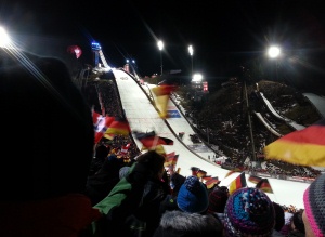 29 décembre 2013, jour du concours. Le soussigné n’ayant pas supporté les 34 litres de Gluhwein a décidé de se faire un «Tag ohne». Journée Nez Rouge avec la part sérieuse du binôme. Départ tranquille au site du tremplin, premier arrêt refill à la brasserie du soir d’avant où un panneau interdit explicitement aux fans de football de ne pas fêter trop les buts de la télévision. Bavière…