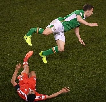Eire-Pays de Galles devait être un choc. Le choc a bien eu lieu entre Taylor et Coleman, double fracture tibia péroné et rouge direct. Pour le reste, pas grand chose à signaler, mais ça nous fait quand même quelques jolies photos en souvenir. Aux dernières nouvelles Coleman pourrait être absent « pour une durée indéterminée ». Tu m’étonnes.