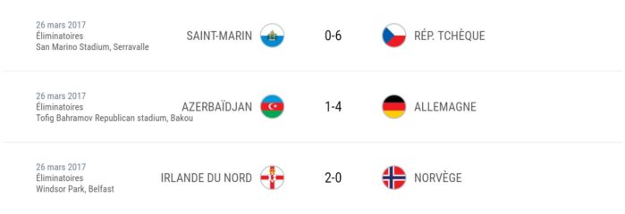 Tendance : Non contents d’être certains de prendre une valise lors de leur prochain match à Nuremberg, les Saint-Marinais ont en plus réussi à vexer les Allemands au match aller (lire leur porte-parole ici). Quand tu mesures un mètre douze, est-il nécessaire de traiter Tyson de petite bite juste avant de monter sur le ring ? Ça sent quand même l’immense déculottée… Azerbaïdjan-Irlande du Nord sera le vrai choc de cette journée.