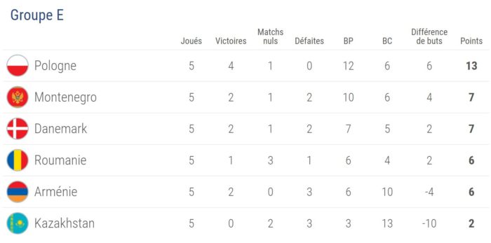 Tendance : Lewandovski va continuer à se tirer la bourre avec CR7 pour le titre de meilleur buteur de ces qualifs. Les Danois qui péclotent depuis quatre ans et qui ont débuté ces qualifications de manière bien poussive vont complètement se relancer en s’imposant au Kazakhstan. Le Monténégro, qui reste sur deux défaites, n’a pas dit son dernier mot et n’aura pas le droit à l’erreur contre l’Arménie. Bref, la bouteille à l’encre pour cette deuxième place.