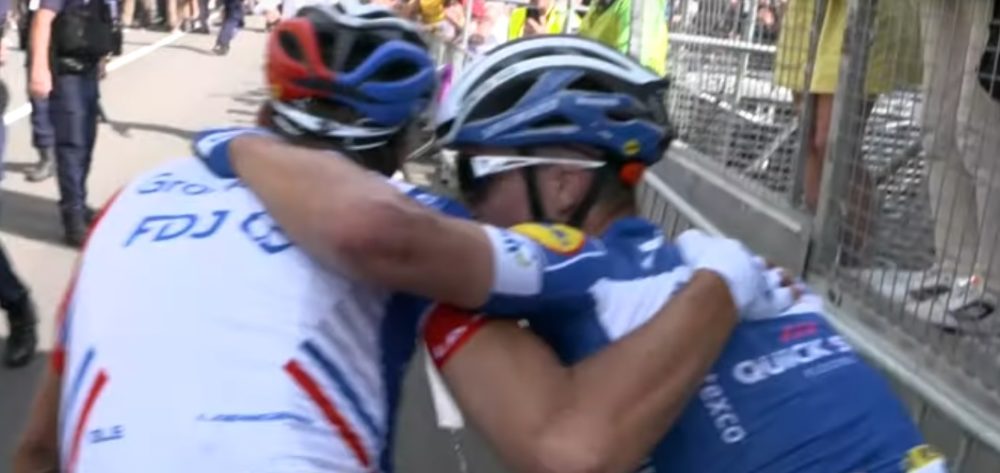 Pinot et Alaphilippe partagés entre le braquage du maillot jaune et l’amour de jeunesse.