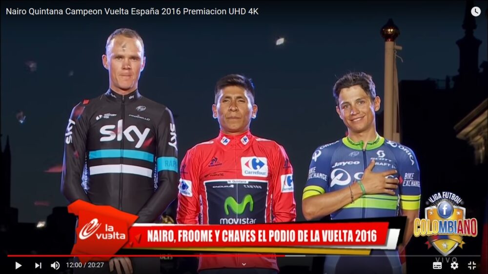 En 2016, Quintana profite du fait que Valverde dispute les trois Grands Tours la même année pour se retrouver enfin leader unique sur le Tour de France. Mais il apparaît moins fort que les années précédentes en ne parvenant pas à bouger Froome dans la montagne comme en 2013 et 2015. 3ème de la Grande Boucle derrière le Kényan blanc et l’intrus Romain Bardet, Nairoman se rattrape un mois plus tard sur la Vuelta en remportant son deuxième Grand Tour devant Froome, Chaves et Contador, après le Giro 2014. Ce coup-ci, pas de polémique comme en Italie il y a deux ans, son triomphe est total dans les rues de Madrid.