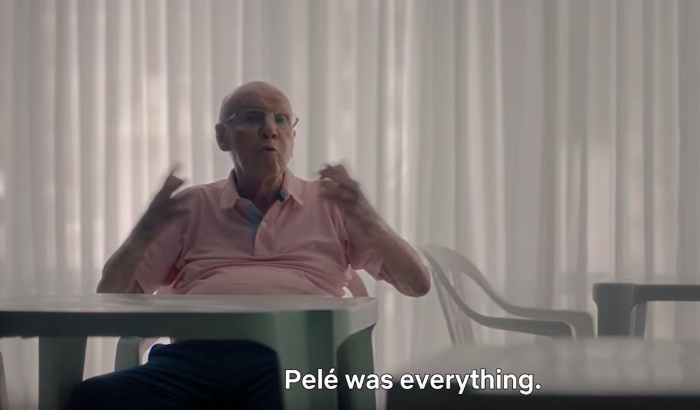C’est un peu pareil avec la plupart des intervenants, à savoir des anciens coéquipiers pas tout jeunes non plus qui sont aussi interviewés dans des décors un peu miteux comme une cuisine insalubre ou un salon de coiffure désaffecté. Ils sont appuyés par des journalistes sportifs, un ancien président du Brésil (Fernando Henrique Cardoso, dont Pelé sera le ministre des sports) et bien sûr Gilberto Gil parce que … le Brésil quoi. Il y même l’immortel Màrio Zagallo (si, si, il est toujours vivant), cinq fois coach de la Seleção. Au milieu de tous ces vieillards, il représente un peu le vieux-vieux Schtroumpf, celui qui est encore plus vieux que les autres vieux. Étonnamment, il n’y a aucun jeune intervenant, pas de Ronaldo, Ronaldinho ou Neymar pour parler de l’inspiration que représente pour eux Pelé. Pas même un coucou de Maradona, ce documentaire est vraiment crépusculaire.