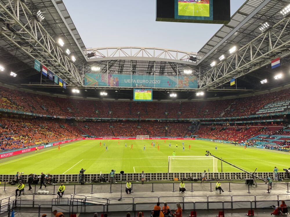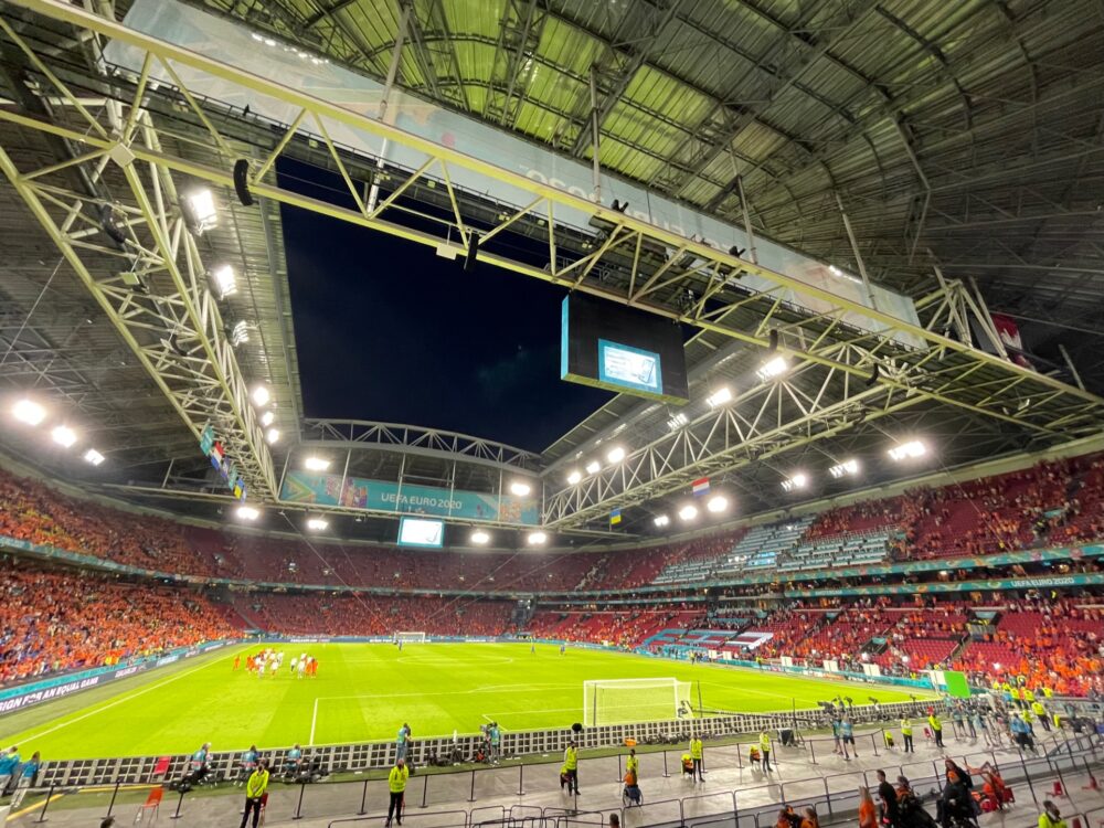 Si ça avait été en 2020, il n’y aurait pas eu de public à la Johan Cruyff Arena. Mais en 2021, il y en a eu un peu. Et comme CR est toujours sur la brèche, on s’est débrouillé pour avoir un envoyé spécial à Amsterdam. Et ça, ça claque. Même la RTS n’avait personne. Petite impression du décor, pour ceux qui ne se souviennent plus à quoi cela ressemble d’être dans un stade :