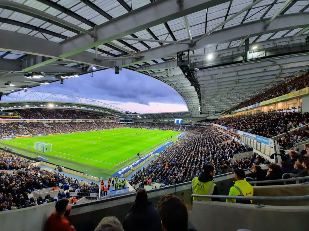 On peut rallier Londres à la coquette Brighton en un peu moins d’une heure en prenant le bon train. Une fois sur place, rien de plus facile que de suivre les fans des Seagulls vêtus de bleu et blanc sortant des différents pubs du centre. Quelques minutes de train plus tard, on s’empresse de sortir du wagon pour ne pas succomber sous les odeurs atroces de vieilles canettes ou de panses de supporters en train de digérer leur Fish and Chips de midi. Et c’est à ce moment-là qu’on fait pour la première fois connaissance avec le splendide Falmer Stadium, renommé American Express Stadium, quelques années après son inauguration en 2011, pour pouvoir se payer Lallana.