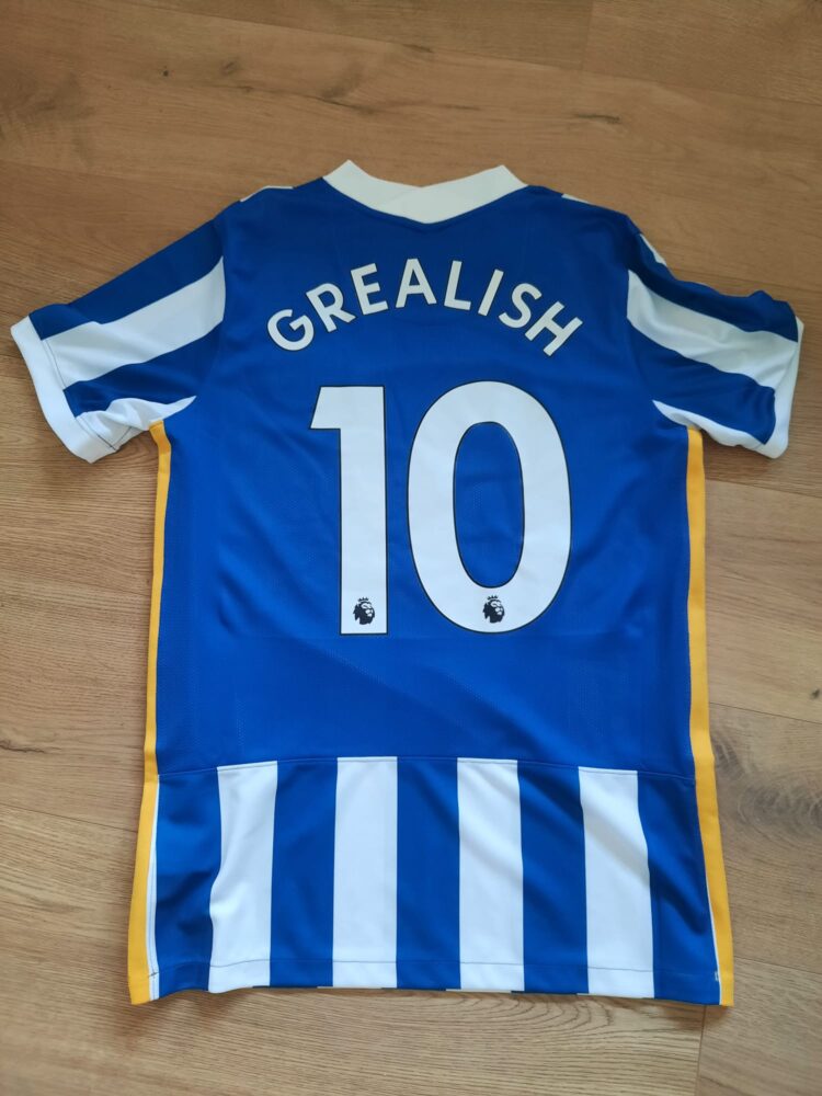 Comme dans tous les stades anglais, la boutique de l’équipe occupe une place privilégiée. On en a bien sûr profité pour passer inaperçus, ou presque, et se fondre dans la masse le temps d’un match. La bonne idée de la journée fut de se faire floquer un maillot des Seagulls avec le numéro 10 et Grealish dans le dos. « Ben oui, ça va faire rigoler, il est apprécié partout le Jack ! », j’ai pensé.