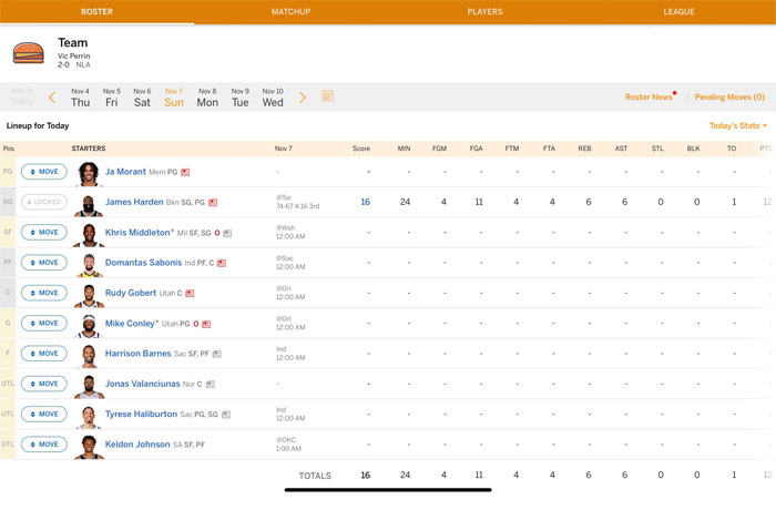 Pour ne pas répéter l’erreur de « Mon Petit Gazon », je me suis dit que j’allais passer une bonne heure à éplucher les meilleures tendances, voir quels joueurs seront à suivre pour la saison, comprendre les projections données par les professionnels américains de la Fantasy League. J’avais ma liste de joueurs prête et ma petite bière devant mon iPad. Puis tout s’est écroulé : 4ème à sélectionner, je ne sais que faire puisque mes trois premiers choix sont pris. Au revoir Giannis, MVP en puissance, mais aussi le magicien Doncic et la pépite des Nuggets Jokic. Je me retrouve donc à sélectionner un joueur que je n’apprécie pas mais dont j’imagine qu’il me rapportera des points. C’est le choix de la raison plutôt que du coeur avec James Harden. À ce moment-là, je crois avoir vécu le plus gros dilemme de ma vie depuis le choix entre Carapuce, Bulbizarre et Salamèche dans Pokémon Rouge, c’est dire.