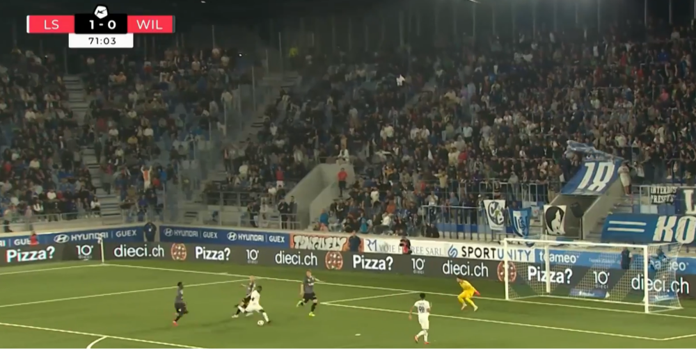 Pour ce FC Wil fébrile au possible, la seule véritable chance de but sera venu des pieds de Sofian Bahloul, à la 40ème minute de jeu. Suite à un corner et à un mauvais replacement de la défense lausannoise, le numéro 10 des visiteurs s’est retrouvé bien seul pour reprendre le ballon au point de penalty. Mais sa reprise de volée a été majestueusement repoussée par Castella. Dommage pour les St. Gallois, d’autant plus quand on sait qu’habituellement il (lui) en faut peu pour être heureux à Bahloul.
