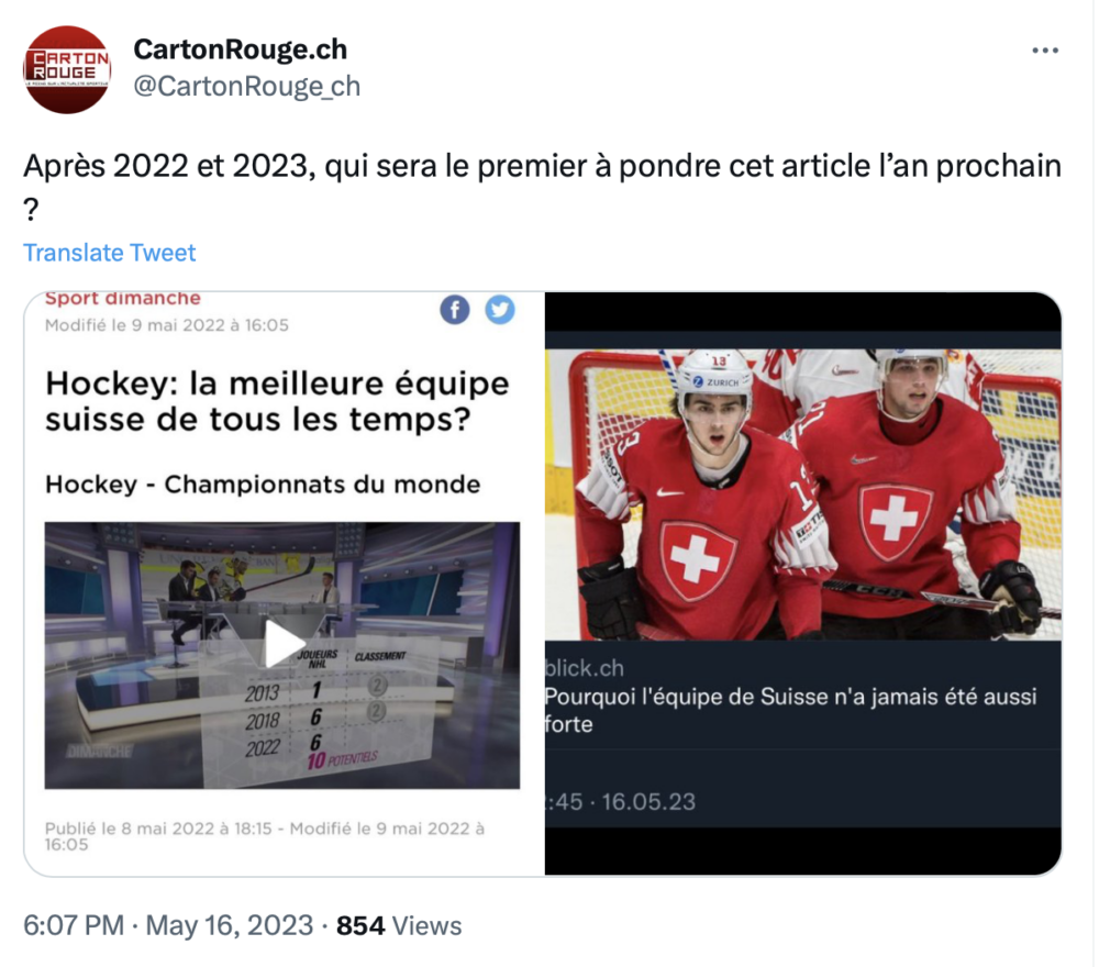 Vous noterez qu’on a inclus Patrick Fischer dans les buses du match, même si l’ancien joueur des Coyotes a autant de chances de se faire virer que Tina Turner de gagner Roland-Garros cette année. Oui, car au vu du critère décisif pour être engagé comme entraîneur national actuellement (être suisse), il suffirait que Luca Cereda ne soit pas intéressé par le job pour que toute procédure de licenciement avant le terme (en 2024) du contrat de l’homonyme de l’ex-présentateur de T.T.C. et Mise au point soit tuée dans l’oeuf. A moins bien sûr qu’Yves Martin réponde enfin aux appels du pied insistants de la fédération.