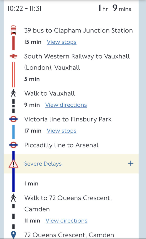 En vrai le site de Transport for London nous suggérait d’y aller à vélo comme option numéro 1. On lui a dit d’aller se faire foutre.