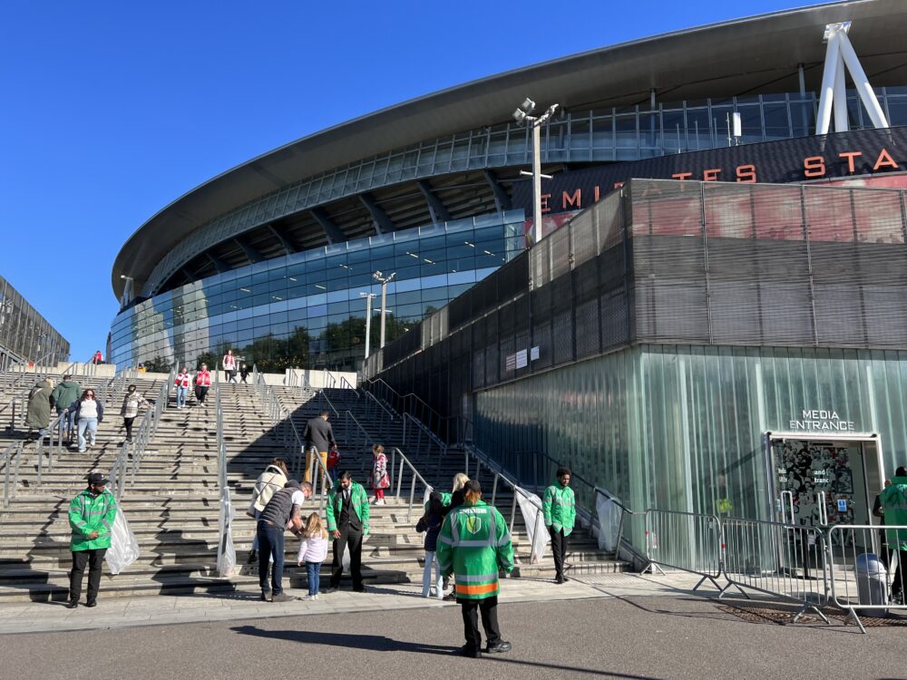 On avait envie d’en engueuler plus d’un (voir plus haut), mais c’était quand même pas mal. Difficile d’être trop durs avec les 35’829 curieux présents à l’Emirates Stadium. Quand ta place ne coûte que la moitié du combo burger-bière à la buvette, tu as le public que tu mérites. D’autant que la concurrence était rude à quelques encablures d’Arsenal, puisqu’une rencontre de football américain entre les Tennessee Titans et les Baltimore Ravens avait lieu presque en même temps au Tottenham Hotspur Stadium. On a d’ailleurs aperçu un gars vêtu d’un maillot de NFL qui s’était clairement trompé de stade (ou à qui sa copine avait menti). Il a quand même dû être vachement surpris au coup d’envoi.