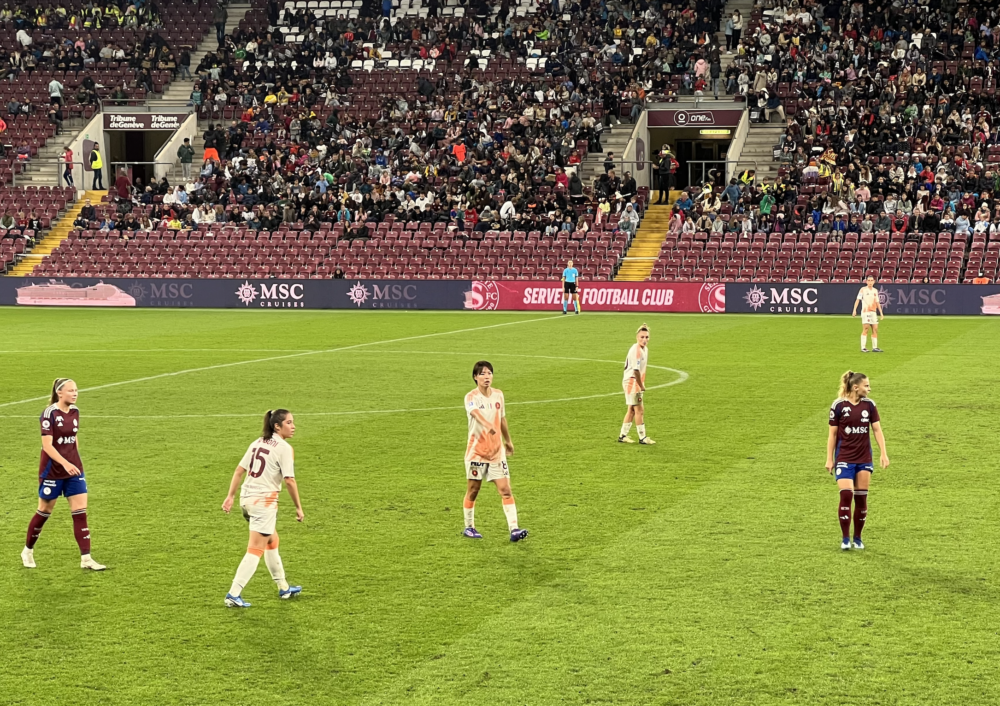 Evelyne Viens, Emilie Haavi et Camelia « Jules » Ceasar étaient de passage au bout de notre beau lac du Pays de Vaud et vous pensiez que Carton-Rouge allait laisser passer l’occasion d’enclencher la machine à calembours si effroyables qu’ils feraient frissonner un habitant de Phœnix dépourvu d’air conditionné après 113 jours consécutifs au-dessus des 100 degrés Fahrenheit ? Vous vous fourrez le doigt dans l’œil jusqu’à l’embouchure de l’Arve, cher(s) lecteur(s) ! Oui, on espère en attirer plus d’un pour une fois 🤞🏻 En route donc pour le match retour du barrage (anti-crue ?) qualificatif pour les poules de Women’s Champions League entre le Servette FC Chênois Féminin et l’AS Roma au Stade de Genève.