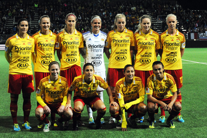 Le Tyresö FF en 2013 avec au rayon des légendes Ali Krieger, Caroline Graham Hansen (les deux premières en haut à gauche), Caroline Seger (avec le brassard), Christen Press et Marta (les deux dernières en bas à droite). Elles avaient 2-3 sponsors avant la faillite…